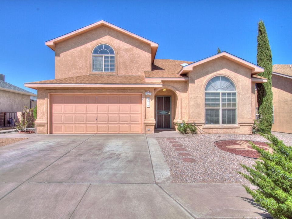 Location, Location, Location! This light, spacious Taylor Ranch home is close to beautiful bosque walking and riding trails, Mariposa Park, shopping, and restaurants. Easy access to the east side, the train station, and I-25. 5 bedroom, 3 bath, (with one bedroom on first floor) cathedral ceiling, wood-burning fireplace, open kitchen with granite countertops, balcony on second floor master with view of Sandias, large back yard. Very well maintained by original owners. This home is ready for your family to move right in!
