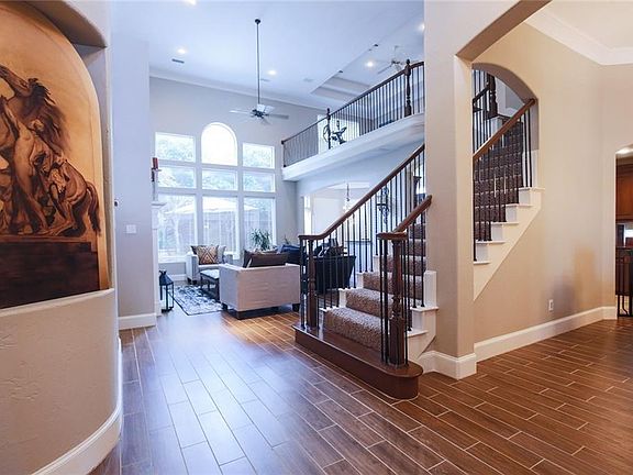 Custom Goodman home in gated Lakes on Legacy!Take advantage of the master suite with custom shower, jetted tub, split sinks, &his and her closets with built ins. Open living room with vaulted ceilings and new wood tile throughout.*Cabinets are now white*Kitchen is open to living room and offers granite countertops, butlers pantry, breakfast bar and elegant formal dining.Upstairs loft area with closet could be used for a game room, media room or fitness area!Enjoy the beautiful landscaping, large patio and low backyard maintenance! New Roof in Feb. 2017!HOA also includes 2 community pools, tennis, and a stocked fishing lake for the residents. Close to The Star, Toyota, Billion Dollar Mile, great food & retail!