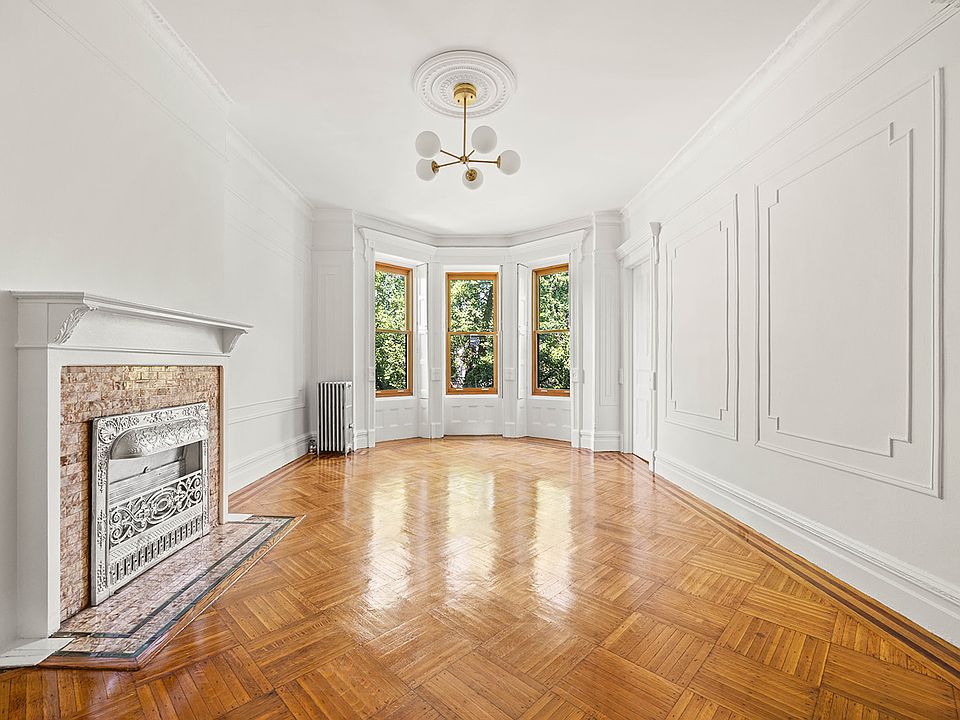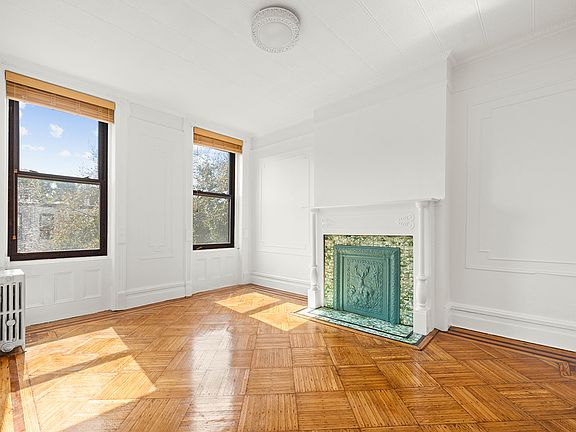 Decorative fireplacePre-war detailFive-room apartmentHigh ceilingsStainless steel appliancesCrown moldingsHardwood floors