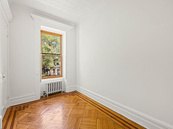 ONE BEDROOM PLUS OFFICE/NURSERY. Extremely spacious, bright, renovated, five-room apartment in a beautiful 20 feet-wide brownstone on tree-lined 13th Street. This home has a flexible layout that can be used as either a one-bedroom with formal dining room, living room, and office, or a two-bedroom, with a formal dining room and living room. This apartment is dripping with charm and pre-war detail, including high ceilings, crown moldings, built-ins, hardwood floors, and decorative fire place. The windowed, kitchen has an abundance of storage and stainless steel appliances. The separate, large dining room off the living room is great for entertaining. This serene, floor-thru apartment is only one internal flight up and has unobstructed views of brownstone Brooklyn. Sorry, no pets. First showing at the open house.