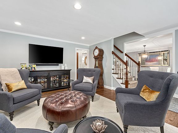 Nestled in one of the most sought after neighborhoods this charming, architecturally unique home is a true gem offering modern updates and timeless design. The exterior boasts a natural stamped concrete driveway and walkway that leads to the quaint front porch and the fully fenced backyard is huge offering plenty of outdoor space, a deck and paver brick patio. Inside you'll find a seamless blend of contemporary finishes and thoughtful renovations including a remodeled chef's kitchen featuring an expansive center island, custom cabinetry, backsplash, high end appliances, a range with custom hood, refrigerator bar and tons of storage. The adjacent eat-in areas, large family room and living room and the charming screened-in porch makes entertaining a breeze. The first floor also offers a fifth bedroom or work office, a half bath and hardwood floors throughout adding warmth and elegance to every room. Upstairs you'll find 4 large bedrooms designed for relaxation and privacy. Bedrooms are generously sized with room for king sized beds, seating areas and additional furnishings. The Primary suite is ample and offers a walk in closet, fireplace and an updated bath with custom vanities, spa like shower, soaking jetted tub and luxurious fixtures. The shared second bath is updated to perfection. Lower level includes a recreation room, exercise room, plenty of storage and has stairs leading to the garage. This stunning home has been completely renovated over the years. Additional updates and features include HW floors throughout the entire home, remodeled bathrooms, all interior mahogany doors, light fixtures, newer furnace, AC's, garage door, outdoor patio, professional landscaping, shutters throughout, custom drapery, closet organizers and so much more! This magazine worthy home is perfectly situated on a tree lined street-a simple stroll to downtown Glen Ellyn, train and schools!