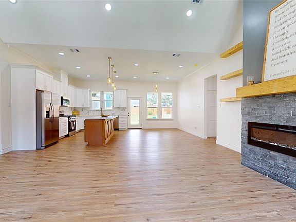 Stunning modern home !!! NO HOA, NO deed restrictions, and a super low tax rate in beautiful Montgomery. This brand-new construction blends rustic charm with modern elegance. Enjoy an open concept layout, designer finishes, and natural light pouring in from every angle. Features include:Gourmet kitchen with oversized island, quartz countertops , and stainless appliances. Vaulted ceilings with exposed beam and a beautiful designed stone fireplace that adds warmth and character to the living space. Luxury primary suite with soaking tub, dual vanities, matte black finishes, and a spacious walk-in closet . Spacious bedrooms , the upstairs bedroom, could also be perfect for a game room or office. BUILDER'S WARRANTY INCLUDED!!!!!!!! The extended driveway, covered back patio, and oversized yard offer the perfect space to relax or entertain.