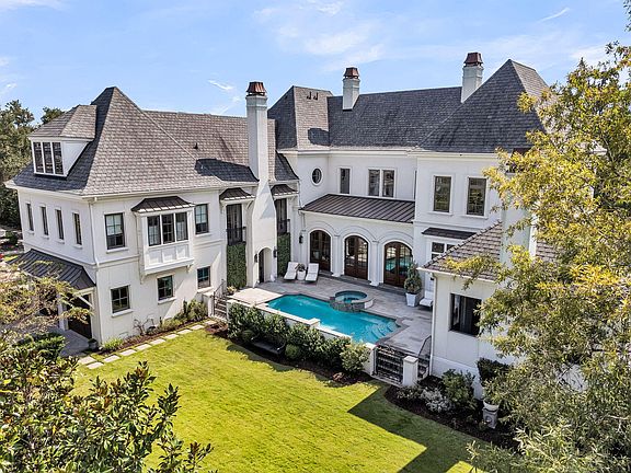 Designed by American Vernacular and built by Welch Custom Homes, this extraordinary French chateau-inspired estate unites architectural grandeur with modern luxury, offering a living experience beyond compare. Soaring 12-foot ceilings on the main level, exquisite 9-foot Brannen mahogany doors with a lifetime warranty, and a custom hand-laid marble and mosaic tile foyer set the tone for the artistry found throughout. An impressive window and trim package floods the interior with natural light, while classic casement windows lend the perfect touch of French elegance. At the heart of the home, a gourmet kitchen with hand hewn beams and a grand island invites entertaining on any scale. Enjoy professional curated meals with Thermador appliances and chilled wines from your walk in pantry.Just beyond, an outdoor kitchen extends the living space within a screened porch, complete with a roaring fireplace and a dining area for enjoying meals al fresco. From here, the setting flows seamlessly to the saltwater pool, where perfectly patinaed spouts add a timeless touch, completing a resort-style backdrop framed by bluestone decking, a breezeway, and landscaped grounds all accented by a side entrance with a massive wooden gate inspired by Charleston charm. The private master suite serves as a serene retreat, complete with a fireplace and double doors that open to a decorative balcony, offering a graceful architectural accent and views of the pool. The master bathroom showcases inlaid marble detailing in both the shower and separate tub area, complemented by hand-painted French cabinetry, creating a spa-like sanctuary. While additional bedrooms, a separate mother-in-law suite, game room, and private office provide versatile spaces to suit every lifestyle. In addition, the home can easily be converted into a 5 bedroom as shown in attached floor plans. Above it all, a remarkable 1,500+ square feet of walk-in attic storage enhances the home's functionality. Adding to its appeal, the estate enjoys close proximity to the Ralston Creek private boat launch, located just a few doors down the perfect spot to drop in your boat or cast a line for dinner right off the dock. This estate is more than a home it's a masterpiece of craftsmanship, elegance, and enduring beauty.