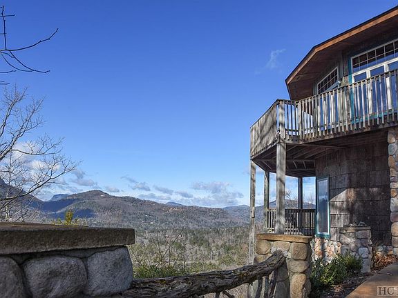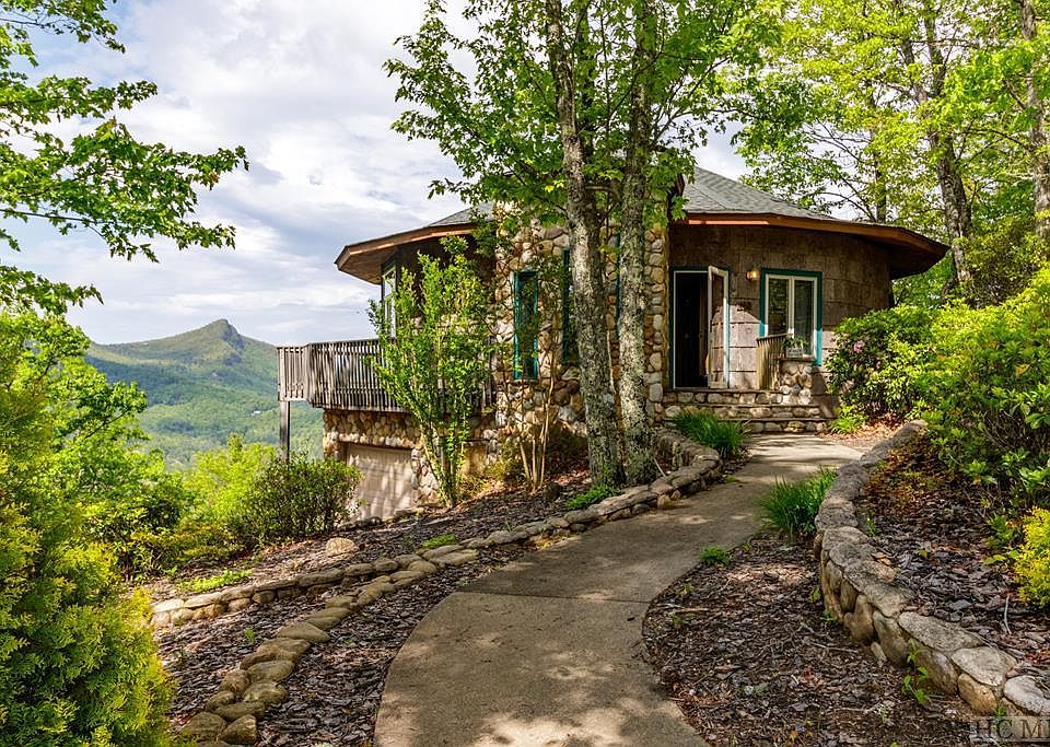 This roundette home is positioned offering maximum enjoyment and appreciation for one of the best views of Chimney Top and Whiteside Mtns. You can also see easily see Yellow Mountain and Little Sheepcliff mountains. Facing almost due west, spectacular sunsets and cloud formations await you. Your views are protected as you are nestled onto the side of this rockface mountain, a portion of which is an interior feature of the home. Prepare to be intrigued over the mystical forces of nature as you enjoy this unique beauty. Near 4,000' elevation and club amenities that include indoor/outdoor swimming pools, track, pavilion, community center, fitness center, ski slope, tennis, private lakes and more. The towns of Cashiers and Highlands are nearby with their well known golf courses, fine dining, shopping, summertime outdoor concerts, waterfall, hiking and mountain biking trails. Then there's Lake Glenville, a 1400 acre lake for boating, sailing, water skiing, jet skiing, fishing and swimming. After you've done it all, you come home to relax as you imbibe your favorite beverage in front of the fireplace as the sun settles between two of the most majestic beauties in this area.