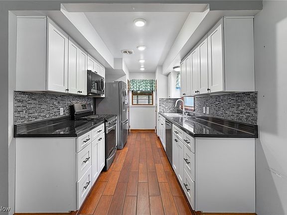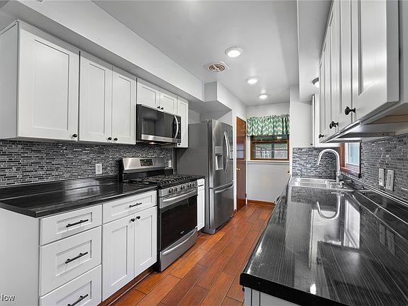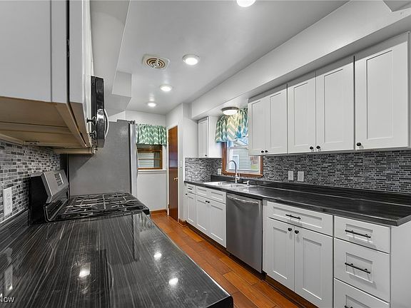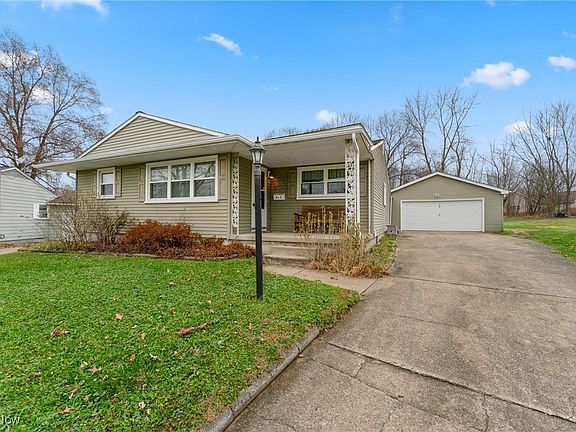Welcome to this charming ranch style home situated in a friendly, well established Hubbard neighborhood, just down the road from Jones Field Park. Built on a lot that’s noticeably larger than most in the area, this property offers plenty of outdoor space for relaxing or entertaining. Inside, you’ll find 3 bedrooms and 2 full bathrooms. A covered front porch leads you into a warm living room with carpet and vinyl windows, opening into a dining area and kitchen. The kitchen features tile flooring, shaker style wood cabinets, laminate countertops, a fiberglass backsplash, stainless steel appliances (gas range, fridge, dishwasher), and a cozy pantry. All three bedrooms are on the main level and boast hardwood floors and ample closet space. The updated main bathroom includes a tub/shower surround, vinyl plank flooring, and a modern vanity. Downstairs, the finished basement provides additional living space, with carpeted walls, paneling, and a versatile area that could function as a bar. There is also a separate laundry area, generous built-in storage, and a second recently renovated full bathroom with tiled walls and flooring. The back of the house includes a sun-filled porch overlooking the large backyard, offering a peaceful retreat. Outside, there’s a 2-car garage and a lean-to workshop attached, perfect for hobbies or DIY projects. Built with vinyl siding and a dimensional shingled roof, this home is equipped with a forced-air furnace, central A/C, and a 100-amp electrical panel. Located in the Hubbard Exempted Village School District, this property is not just a house, but a place you can truly call home. Don’t miss this rare combination of space, comfort, and neighborhood charm.