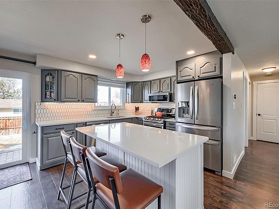 Beautiful, fully remodeled ranch style home tucked back in quiet cul-de-sac in the highly desired Acres Green Community! This home has been fully remodeled over the last 3 years and is move in ready. Improvements and updates include new Class 4 roof, A/C and furnace, carpet, quartz counters and bathroom finishes in 2022, new water heater, radon fan, and paver patio in 2021, new appliances, interior doors and trim in 2020 and new vinyl windows, LED can lighting, laminate plank flooring in 2018. On the main floor you will find a wonderful open floor plan with a large living room open to the kitchen and dining area. The kitchen has a large island with seating, stainless steel appliances, quartz countertops, nice tile backsplash and under cabinet lighting. The main floor bathroom has been fully remodeled with floating vanity, lighted mirror, tile floors, new tub/shower with custom tile shower walls and glass shower door. Both main floor bedrooms have can lights and are located at the end of the hall. Downstairs you will find a large living area, bonus room great for storage or exercise equipment, large bedroom with new egress window, walk in closet and attached remodeled bathroom. Garage is attached and has access from the main floor. Large backyard with paver patio and storage shed. Home sits in a quiet cul-de-sac and is a short walk to Acres Green Elementary, the neighborhood playground and Sweetwater Park. Acres Green is a non-HOA neighborhood and is conveniently located minutes from Park Meadows Mall and has easy access to C-470 and I-25. This home has been delightfully updated and is ready to go.