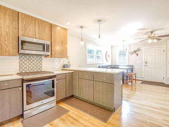 - Kit Dscrp: Main Level, Dining Area, Flooring - Hardwood, Recessed Lighting, Countertops - Upgraded, Remodeled, Peninsula, Lighting - Pendant