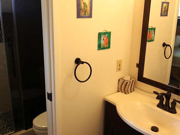 You'll love this large, fully furnished, upgraded 1-BR home that the owners lovingly remodeled when they lived here. Upgraded full kitchen with a dishwasher, range/oven, full size refrigerator/freezer and numerous countertop appliances. The bathroom has been upgraded with a newly tiled glass enclosed shower(not in the video but in the photos) and new flooring throughout the rental. Upgraded with split quiet AC in all rooms, new quiet fiberglass double insulated windows, ceiling fans and 2 WiFi cable TV's.