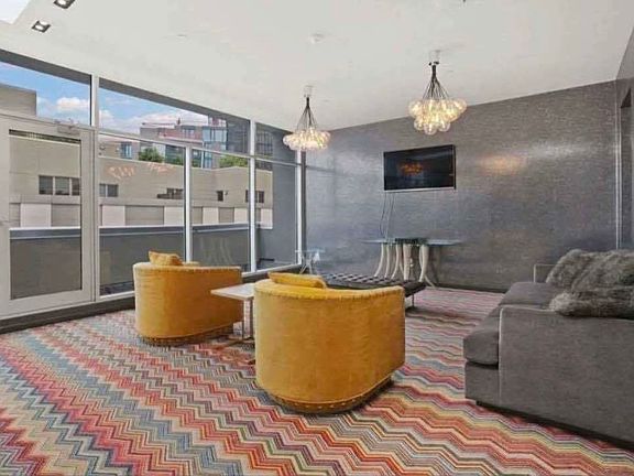 NO BROKER FEE Luxury at its best! California king sized bedroom with master bath and deep walk- in closet. The second room is queen sized with good closet space. Kitchen has an island, stainless steel appliances, lots of cabinet space, dishwasher, washer dryer in unit as well! Great closet space throughout the unit. Living room has a balcony, big windows for lots of sunlight throughout the apartment. High ceilings as well, very spacious come see today! This building has unique amenities! Huge rooftop with 2 large hammocks, lounging, picnic area, BBQ, gorgeous views. Indoor lounge room with pool table, terrace, couches, TV, children's play area , gym, Parking, free bike storage, live in super, pets allowed- no pet fees :) *Photos may be from similar units in the building