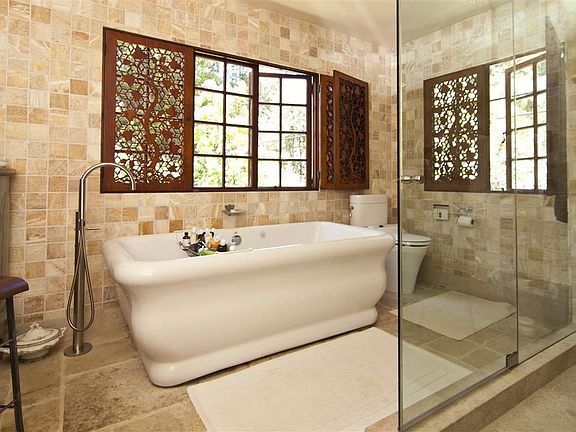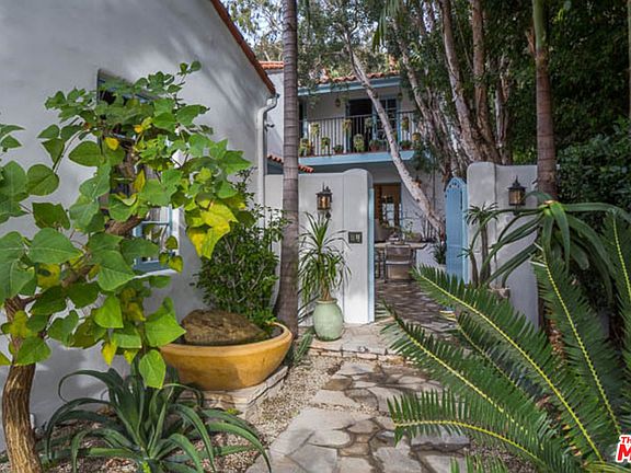 This masterfully restored and artfully decorated courtyard Spanish a beautiful escape from the city. The courtyard gardens have been lushly landscaped and merge seamlessly with the interior living areas. The first story is made up of a dramatic and cozy living area with vaulted ceilings, two bedroom suites, and an integrated kitchen, dining and family room. The master suite defines the second story and provides canyon vistas from the balcony along with a walk-in closet and fireplace. The finest materials have been used throughout and every detail is a meditation. A stone's throw from Will Rogers Park. Offered fully furnished.