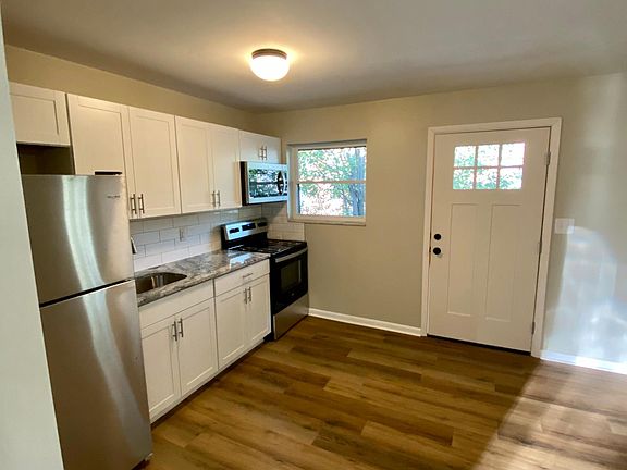 Stainless steel appliancesWhite cabinetsNew doorsCentral airNew carpet in bedroomGranite countertopNew kitchen