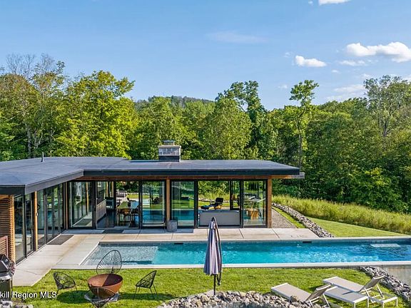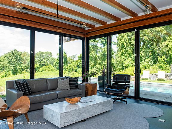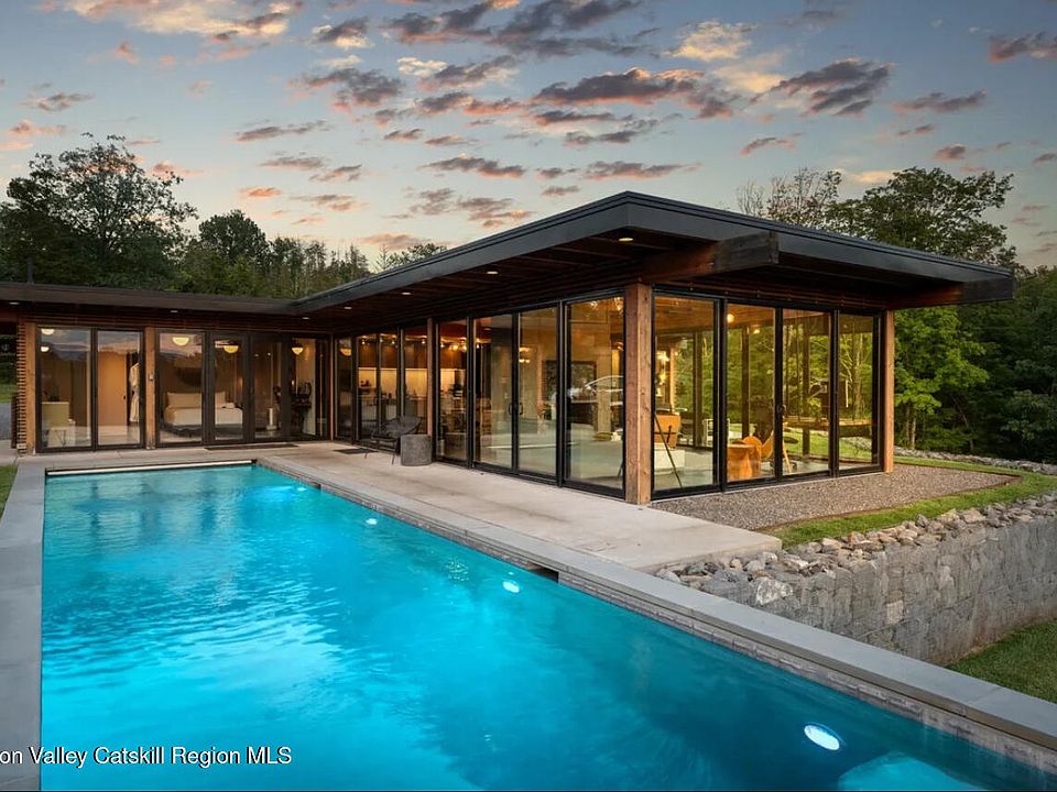 ''Hudson Ridge'' is beautifully sited on 25 private acres along desirable Mount Merino Road — one of the most coveted roads in Columbia County with its sweeping Catskill Mountain views. The house was constructed in 2017 of glass and steel, its architecture inspired by Pierre Koenig's iconic LA Stahl House.