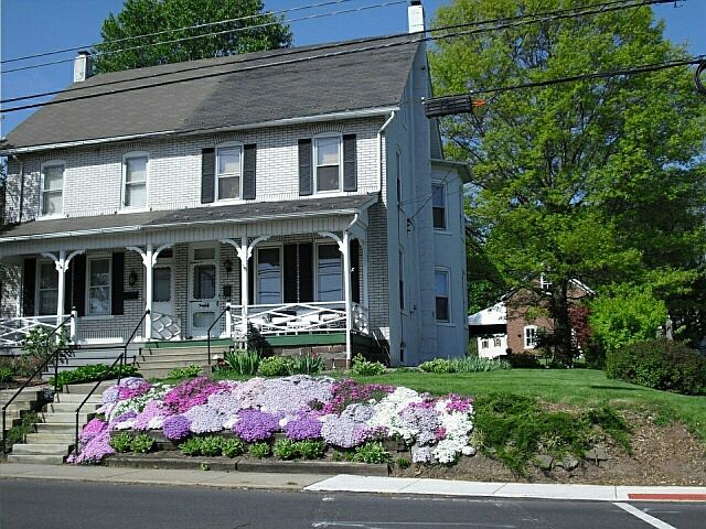 This historic brick twin was built in 1895 and is on top of a hill and offers perfect view of fireworks and parades from the front porch. This 3 bedroom home boasts original finished hardwood floors throughout all three floors. The front door is also original beveled glass and carvings. This home offers and open living room/dining room floor plan making ample space for entertaining. The bright eat-in kitchen boasts a double oven, electric cooking, and an abundance of cabinet space. Off the kitchen is a powder room and mud room. Go up the stairs to the original glass door and glass doorknob. The 2nd floor boasts 2 spacious bedrooms,and a walk through bedroom, porcelain door knobs on the original doors, tilting glass windows over the doors, 1 full bathroom, The partially finished third floor provides potential for a spacious 3rd or 4th bedroom and an additional smaller room for storage, office space, or closet. The property also boasts large bay windows, sliding storm doors, and tons of character, The basement features painted cement floor, outside entrance, work bench, ample storage, and a gas burner for canning. The yard is fenced in and has beautiful gardens and landscaping ! The carriage house features a one car garage, a work bench area, and stairs to the loft above. There is also an overhang for an additional covered parking spot. Laundry hookups in both the basement and the 1st floor. Both roofs and hot water heater replaced a few years ago. This is a one-of-a kind home and it's time to move in!