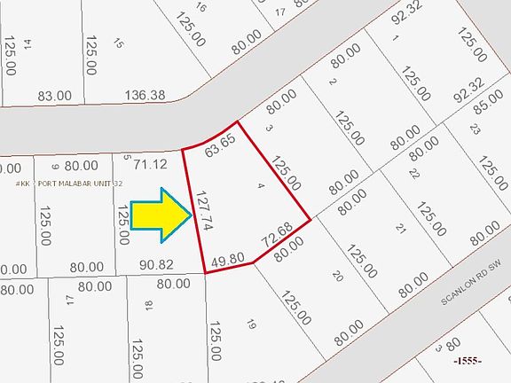 The 0.26 acre buildable residential lot is available in Port Malabar Unit 32 of Palm Bay. Located in the southwest section, this lot is just 1.9 miles - 5 minutes to Bayside High School, 3.2 miles - 9 minutes to the Publix Supermarket, 12.3 miles - 28 minutes to Melbourne Airport, and 15 miles - 35 minutes to the beaches of Indialantic. From exit #176 of I-95 go west on Palm Bay Road for .7 miles, left on Minton Road for 3.4 miles, right on Jupiter Boulevard and quick left on DeGroodt Road for 1.0 mile, right on Sawyer Street for .4 miles, right on Harlingen Road for .2 miles, and left on Scarlet Road. The lot will be on your left.