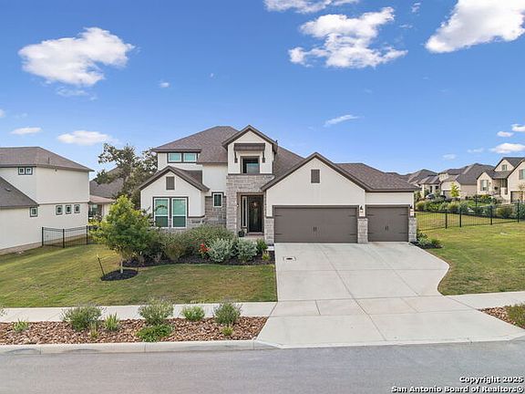 Welcome to this stunning 2-story home in the highly sought-after Esperanza community of Boerne, Texas. Built in 2024, this residence offers over 2,500 sq. ft. of beautifully designed living space with 4 bedrooms, 3 bathrooms, and a spacious 3-car garage. Sitting proudly on a large corner lot, the home combines modern style with everyday comfort. Inside, the open-concept design highlights a gourmet kitchen that flows seamlessly into the dining and living areas, creating a perfect atmosphere for both family living and entertaining. A designated office on the main floor makes working from home convenient and private, while upstairs a spacious loft provides additional flexible living space-perfect as a game room, media room, or second family area. The spacious primary suite offers a private retreat, and all additional bedrooms are thoughtfully sized for comfort. The Esperanza neighborhood is one of Boerne's premier master-planned communities, offering resort-style amenities including a sparkling pool, lazy river, clubhouse, fitness center, and beautiful walking trails. Families will also appreciate being near top-rated Boerne ISD schools, as well as the convenience of nearby shopping, dining, and entertainment. Just a short drive from the charm of Historic Downtown Boerne and within easy reach of San Antonio, this home offers the perfect balance of community, comfort, and convenience.