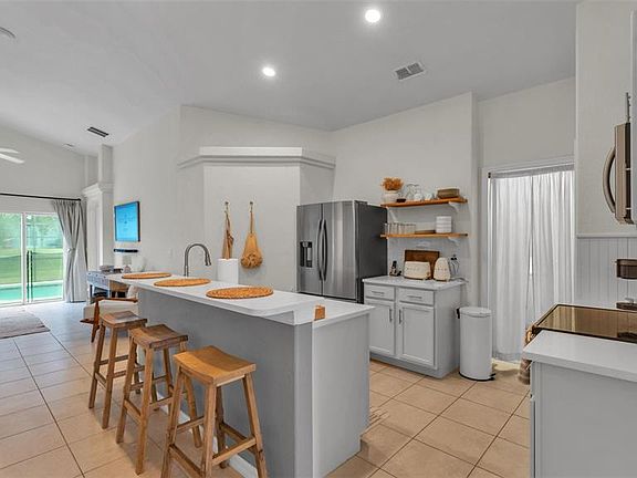 Large center islandFresh interior paintSleek quartz countertopsPrivate screened-in pool areaSpacious open-concept layoutStainless steel appliances
