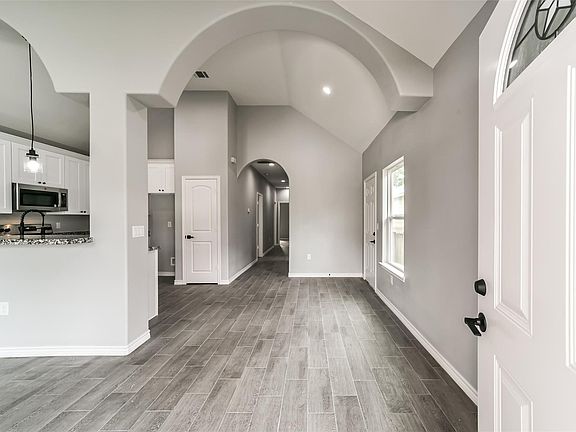 New construction By Zion Homes! Lovely single story home close to the lake. Pictures are of a similar build in the community. So many nice features in this home. The high ceilings give it large open feel that compliments the rounded corners and archways. This open floor plan features a granite kitchen with stainless appliances and a breakfast bar that opens to the den and dining area. Very nice size laundry room included! This home has ceramic tile throughout and carpet in the bedrooms. The primary bath has an extra large shower that gives it a spa like feel. All this with no back neighbors and at a very affordable price. Come take a look soon! Lot next door is also available! Close to Lake Conroe and the city of Montgomery, perfect location for shopping dining and all the lake activities including fishing!
