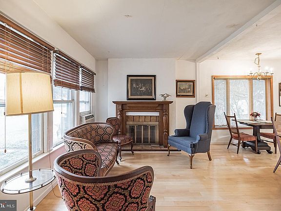 Cute three bedroom rancher with a fenced in private yard and low taxes!. Nice brick 2 car garage. The pretty front door leads to the living/dining areas. The living room has a cozy fireplace. There is a nice, bright galley kitchen with plenty of cabinet space and room for a table at the far end. Off the kitchen, at the back of the house is a quaint sunroom with terra cotta tiled floor and wood burning fireplace. The door off the sunroom leads to a large, fenced in, back yard with plenty of space for entertaining or for kids to play. The main bedroom is at the back of the house off the breakfast area, with a brick accent wall. The middle bedroom is spacious and the front bedroom would make the perfect home office. This house is just right for starting or downsizing.