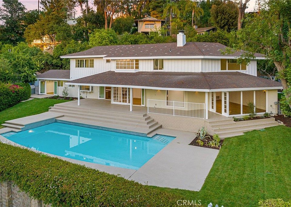 Nestled in the hills of Encino on an expansive private lot. If you are looking for privacy and security, this is definitely the property to be looking at. This secluded property is RTI ready, with plans for a 11,621 sf estate that includes 8 bedrooms, 11 bathrooms, an attached ADU. Enjoy this prime south of the Boulevard location, ideally situated within a highly rated school district and close proximity to everything the Valley and Westside have to offer. Tucked behind a private gate at the end of a long driveway, the current home welcomes you through double doors into a spacious family room that overlooks the lush backyard and flows seamlessly into the formal dining room. A culinary enthusiast's dream, the gourmet kitchen is equipped with chef grade Thermador appliances, custom cabinets, a massive island with seating and walk-in pantry. Rounding out the main level is a sizable living room that boasts a stunning fireplace and walls of glass that flood the space with natural light, laundry/mud room and secluded bedroom. Retreat upstairs to the stately primary suite, complete with a custom walk-in closet and sumptuous bathroom that features a soaking tub, rainfall shower system and double vanity. Additionally, you will find three generously sized bedrooms upstairs, one of which has an ensuite bathroom. Surrounded by mature landscaping, the serene backyard oasis is the perfect spot to relax or entertain guests. This expansive property offers a sparkling pool, covered patio, sports court and grassy yard. Further amenities include a two car carport, large driveway with abundant parking and ample storage space throughout, including an attached storage shed.