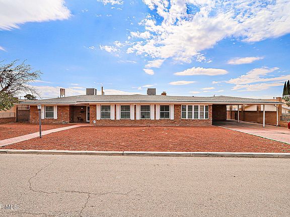 Updated & Elegant Entertainer's Dream!This beautiful single-story ranch blends timeless updates with open-concept living. Travertine flooring flows throughout the main spaces connecting the living, dining, and den areas—perfect for gatherings. The den's fireplace with custom built-ins and mantle adds warmth and charm. The gourmet kitchen shines with granite counters, raised panel cabinets, tin backsplash, double ovens, gas cooktop, and restaurant-style Kenmore Elite refrigerator/freezer. A built-in desk, wet bar, and large pantry add function and flair. The spacious primary suite offers dual sinks, jetted tub, separate shower, and wall-to-wall closets. Additional bedrooms are generous, plus a bonus room ideal for a theater, gym, or hobby space. A small basement provides extra storage or future wine cellar potential. Centrally located near Radford School, with quick access to I-10 and US-54 for easy commuting anywhere in El Paso.