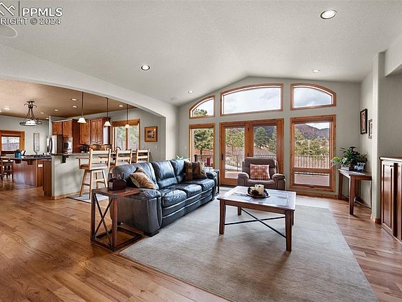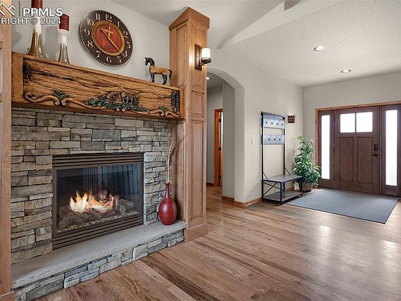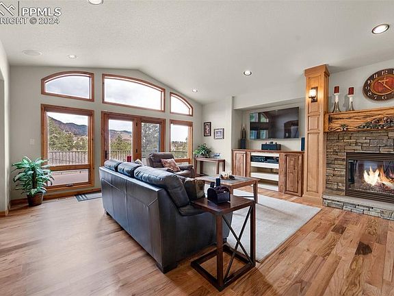 Views in every direction!* Fabulous Mountain Contemporary home on 1.35 acres very close to National Forest and many hiking trails* Views of the sparkling city lights, rock formations and mountains* Luxurious Master suite with gas fireplace and beautiful 5 piece adjoining bath, views and walk-in closet* A welcoming covered front porch/patio* Warm hardwood flooring* 3 fireplaces* Open and flowing floor plan with vaulted ceilings, large windows and spectacular views!* Gourmet kitchen with stainless appliances, granite counters, eating bar and large island* Kitchen nook with a walk out to a covered patio, water feature and fire ring* Finished walk out basement* Welcoming and sizable wet bar and pool table area as well as media area in the walk out basement* 3 additional bedrooms and full bath in basement* Fenced dog yard area* South facing concrete driveway* Spacious covered RV parking*Gas fire ring on one of the patios, the outdoor living is fantastic* 3 car garage, covered RV parking (or large covered patio) and parking for guests in the driveway* Custom pergola to enjoy the outdoors and views* Pool table is included* This home is a must see!