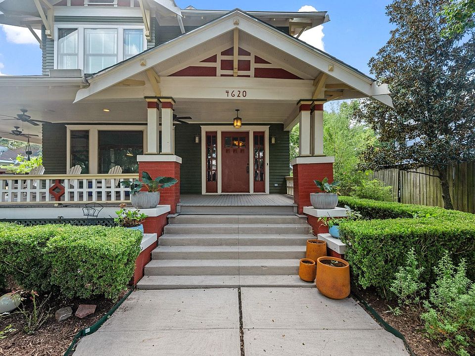 Step into this one-of-a-kind Eastwood retreat just moments from downtown Houston. Set on an oversized lot surrounded by mature trees and lush landscaping, this timeless Craftsman home exudes warmth, character, and true craftsmanship. A generous wraparound porch spans the front of the home, offering the perfect vantage point to enjoy the charm of the tree-lined street. The backyard feels like a private oasis — complete with a sparkling pool, outdoor shower, and cedar sauna. Inside, beautiful wood beams, exposed finishes, and rich textures highlight the home’s architectural integrity across three stories of inviting living space. With its seamless blend of historic charm, mid-century modern flair, and effortless indoor-outdoor living, this exceptional home offers the perfect balance of relaxation and sophistication in one of Houston’s most beloved neighborhoods.