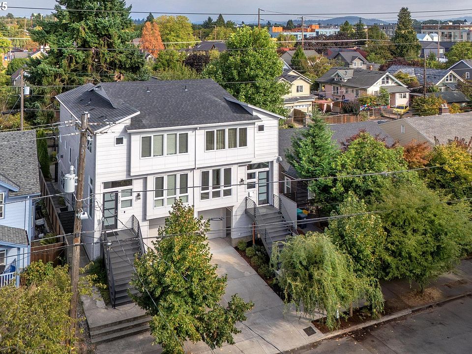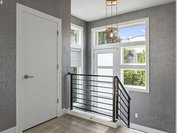 OPEN HOUSE SUN 10/5 11-1pm. This stylish 5 BR, 3.5 BA residence blends modern elegance with thoughtful functionality. The main level showcases soaring ceilings, custom lighting, and designer wallpaper accents that set a sophisticated tone. At the center of the open-concept design, the chef’s kitchen features sleek quartz countertops, a generous island with seating, and upscale stainless steel appliances. The inviting living room offers a cozy fireplace and sliding doors to a balcony overlooking the beautifully landscaped patio.Upstairs, the luxurious primary suite serves as a true retreat with custom wallpaper, designer lighting, and tailored draperies adding an elevated sense of style and comfort.Outdoor living is equally impressive—relax in the professionally landscaped backyard with palm trees, patio, and fenced privacy, or entertain year-round on the covered deck off the living room.The ground floor offers exceptional versatility with a fully equipped guest suite/ADU, complete with private entrance and expansive patio—perfect for visitors, extended family, or flexible living options.Situated in one of the city’s most desirable neighborhoods, this home puts dining, shopping, and entertainment just steps away. [Home Energy Score = 7. HES Report at https://rpt.greenbuildingregistry.com/hes/OR10241619]