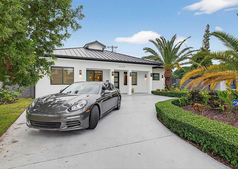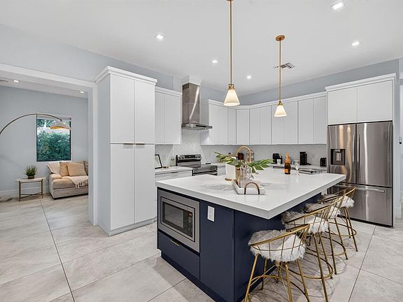 Step into a world of refined coastal glamour with this decorator-designed, turnkey new construction home in south-after North Andrews Garden. From the moment you arrive, the elegance is undeniable, greeted by a large circular driveway, framed by soaring 50-ft. palms and a striking facade of a 2023 custom-built masterpiece. Indulge in the South Florida lifestyle with a heated saltwater pool and expansive covered patio for seamless indoor-outdoor living, professionally landscaped grounds, interior special features: Soaring 10-foot vaulted ceilings, open, coastal inspired kitchen designed for entertaining, split bedroom floor plan, each with custom California closets and spa-inspired bathrooms. Primary suite sanctuary. This home offers also a unique sister property for buyers seeking choices!