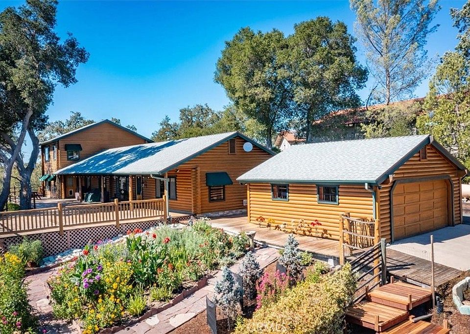 This is your opportunity to own this unique log home! Perched near the top of a knoll, this gorgeous log home has spectacular valley views. You’ll likely spend lots of time on the very spacious deck entertaining friends and family. A log home means lots of golden wood! Throughout the structure, you’ll find log walls and wood ceilings and flooring in the living areas. The charm of a log home gives a relaxed, casual sophistication. With the texture and warmth of the wood, plus the coziness of a pellet stove you’ll want to just curl up with a book and enjoy the views out the windows! Meticulously maintained, this beautiful structure was designed with an open living area perfect for parties and large gatherings. The nearly new kitchen features high-end appliances, custom cabinets and granite countertops. The original home was enlarged in 1990 with the addition of a large bonus room (home-schooling, anyone?) and upstairs master suite with adjoining bathroom. An exterior door affords the option of a separate unit, if desired. A spacious, detached two-car garage provides parking and storage. The gardens adjacent to the home are a stunning focal point to the rest of the almost 2 ½ acre parcel. Bring your chickens and goats or pets, plant your gardens in the raised beds and harken back to the days of Little House on the Prairie! What’s missing? Only the power lines! Underground utilities provide unobstructed views of the surrounding hills and valleys. Call your Realtor© to schedule your showing of this unique property.