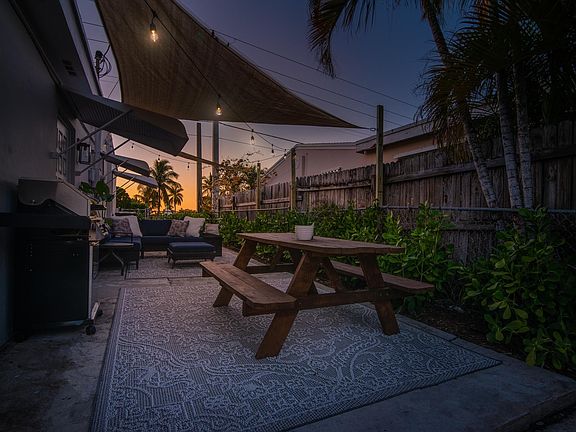 Beautiful and light 3/2 with huge spa-like primary bathroom, spacious kitchen with new appliances and high end finishes throughout. Features include Italian porcelain floors and bathroom walls, custom two-level underlit waterfall countertops, smart plugs for phone charging, remote control fans/lights, backlit mirrors with defog feature in both bathrooms, custom closet in primary bedroom, deep soaking tub and double shower heads in primary bathroom, smart thermostat, ring video doorbell and light sensing exterior lights. Large fenced in patio and grass yard for entertaining or approved animals. Available fully furnished; currently has a king and queen bed in the bedrooms and a full size Murphy bed in the third bedroom, to allow it to be used as an office or den. Private driveway and extensive street parking. Location is ideal, with Publix a couple blocks away and only minutes to Palm Beach, downtown/City Place and Palm Beach International Airport. Seasonal terms considered.