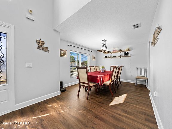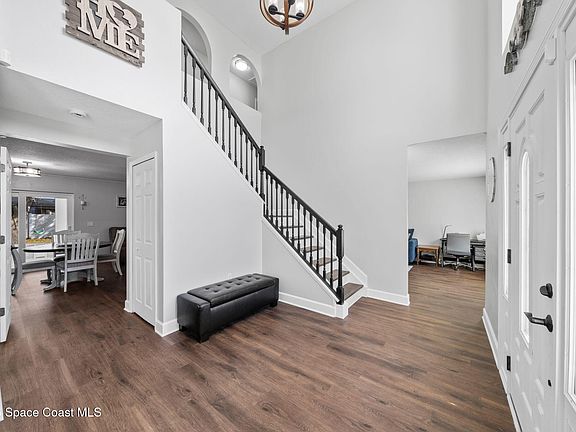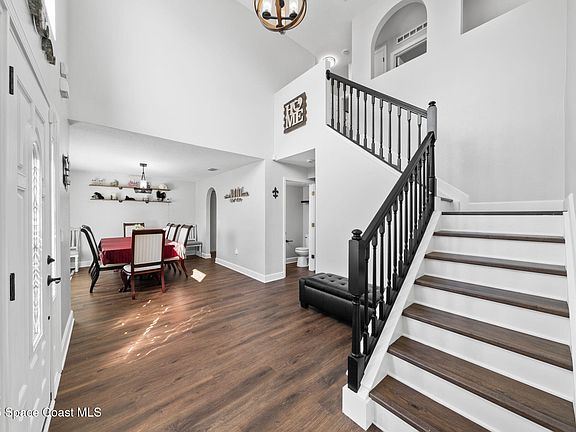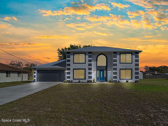 This updated 4-bedroom, 2.5-bath home in Port St. John features a Cook's kitchen with a prep island, stainless steel appliances, and a large corner pantry. It includes a spacious office (or 5th bedroom) and a screened porch. The home has a 20 SEER Carrier Infinity A/C, a 2019 hot water heater, and fresh interior paint. The fenced yard has a utility shed with A/C and a ramp. The oversized 50-ft driveway is perfect for parking a boat or RV with a 50-amp hookup on the side of the house. The 3-car-sized garage has a 2-car entrance (27 ft x 20 ft) and a 50-amp hookup for an EV car charger. All-new hurricane-proof windows and sliding door (2022) and a new metal roof (2021). Move-in ready!