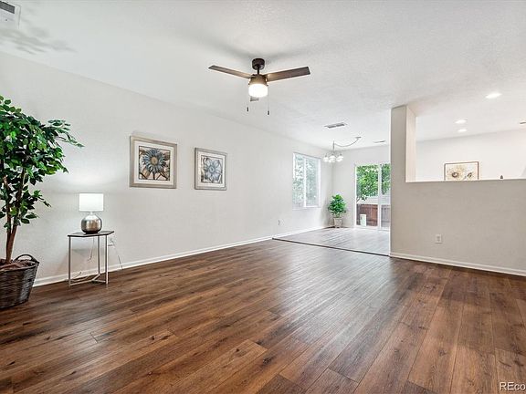 - Description: Newer Rigid Core Vinyl Flooring, Ceiling Fan, Window With Blinds, Recessed Lighting, Open To Kitchen And Dining Area, Easy Access To Garage