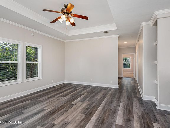 Welcome to your new home at 4621 Third Ave in St. Augustine, FL! This charming single-family dwelling serves as the perfect home, boasting 3 bedrooms and 2 baths in sought-after Saint Johns County. Constructed in 2007, its inviting covered front porch welcomes you into a cozy abode with low-maintenance vinyl siding and elegant wood laminate flooring throughout. The family room features a stylish tray ceiling, while the spacious kitchen delights with quartz countertops, new white cabinetry, and stainless steel appliances. The master bedroom offers an ensuite bath with a separate soaking tub and a walk-in closet. With nearly 1,600 sq. ft. of air-conditioned living space nestled on a tranquil street, you'll find yourself conveniently situated between Historic Saint Augustine and the beautiful beaches. Embrace the freedom of no CDD or HOA dues, making this home an ideal choice for comfortable, carefree living.