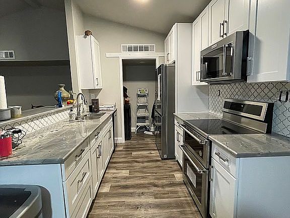 Completely rebuilt from studs. All new dry wall, flooring, plumbing, paint, LP siding, all new doors, windows. Stud termite protection, new a/c 2021, new kitchen cabinets, appliances, vanities, tub, shower.