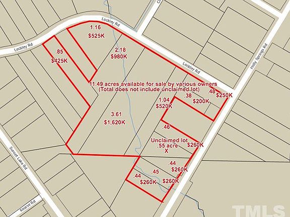 Ten other connecting lots also for sale by various owners. Total of 11.49 acres. Very accessible. Corner of Holly Springs & Sunset Lake Rd. Less than 2 miles from HWY55 & the Triangle Expressway/540 & less than 3 mi to US1/US4. HS Rd will be widened for 540 access. Shopping & dining nearby at HS Town Center & at BeaverCreekCommons. Regional Center zoning. Desired characteristics include mixed use, mixed lot sizes, high density, planned ope space vs tree preservation, smaller setbacks & taller buildings.