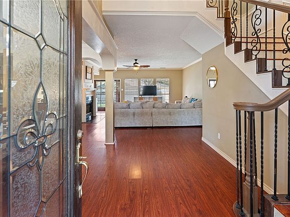 Set on a lovely lot with mature trees in The Lakes, this well-kept brick home offers the ideal blend of privacy, comfort, and timeless design. Inside, high ceilings and a striking staircase create an open, elegant feel, while the living area is anchored by a fireplace that adds warmth and character. A private gated driveway adds both convenience and a sense of seclusion.