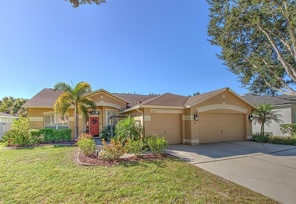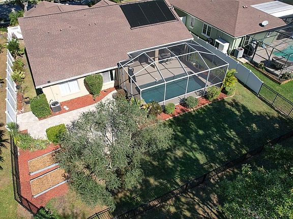 Welcome to this three-car garage pool home with no rear neighbors offering the perfect blend of comfort, curb appeal, and outdoor living. Situated on an oversized conservation lot, this home provides privacy and peaceful natural views. The fully fenced backyard is designed for enjoyment, featuring a screened-in, solar-heated pool, dedicated fire pit area, and raised garden beds ready for your homegrown produce. Inside, the thoughtful split floor plan offers 4 bedrooms and 3 full bathrooms, including spacious living areas with vaulted ceilings, plantation shutters, and a bright kitchen with white cabinetry. The three-car garage provides abundant storage and flexibility for vehicles, hobbies, and equipment. Residents of Bloomingdale enjoy access to a private community park offering basketball courts, a playground, and trails just for the neighborhood. This home is also ideally located near top-rated schools, the Bloomingdale Golfers Club, and everyday conveniences like Publix, Starbucks, and Chick-Fil-A.