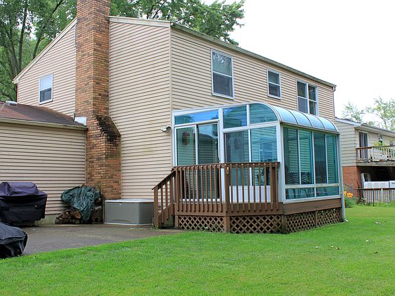 So much space! 2,016 sq ft! 4 bedrooms AND full unfinished basement!! Open living room/dining room, cozy family room with WBFP that has 2017 S/S liner, brick wall & hearth. Eat-in kitchen offers refrigerator, smooth top range, microwave, dishwasher, disposal, plenty of Oak cabinets, pull out shelving in lower cabinets, pantry, island & 2019 flooring. 1st fl powder room. 4 spacious bedrooms upstairs; master has full wall of closets, private updated bath w/shower, vanity & medicine cabinet. Hall bath, updated as well, has tub/shower combination & Oak vanity. The full unfinished basement has 8' ceilings and glass block windows. Fabulous sun room just off family room leads to large fenced back yard that backs to the woods; no rear neighbors. Other features are: May, 2018 new heat pump; April, 2017 radon mitigation; 2 car attached garage. Property line does extend beyond the back fence. Annual HOA includes access to pool, green areas, tennis & basketball courts.