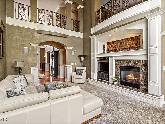 Just reduced $100,000. A private .86 acre cul-de-sac lot, backing to a greenbelt park, is the setting for this 6 BR, 5 bath, 6,840 SF 1 ½ story home with 5-car garages and three actual offices, not bedrooms converted to offices. The main floor has a great room with fireplace, floor to ceiling windows & overlook loft; kitchen with see through fireplace, Wolfe 6-burner+grill double oven range, exhaust vent, granite counters; formal dining room that seats 8; paneled office with beamed ceilings & built-ins; master bath with fireplace & recessed ceilings, walk-in closets, and master bath with two vanities, tile shower & whirlpool tub. The second floor has 3 BRs, 2 full baths and upstairs family room that can be a kids area or another office. The walk-out basement has two more BRs, one full bath, a sunken family room with fireplace, game area for pool table, walk-behind wet bar, wine cellar & lastly a media room or exercise room. There are two decks, one has a cover, and a patio area. There is an oversized 615 SF two car attached garage and a 936 SF 3-car detached garage totaling 1,551 SF of garage space. There is a second lot included just south of the garage for kids play area. This one owner home is in great condition and offers a lot of space on a one-of-a-kind double lot. Located in the sought-after NW Waukee high school district, which is perhaps the newest and best high school facility in the state of Iowa.