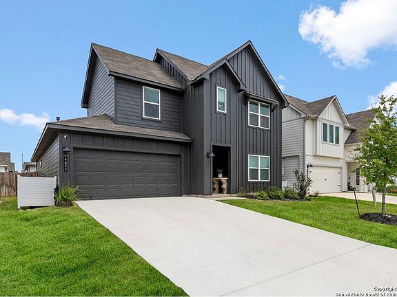This stunning two-story home boasts 2,711 sq. ft. of thoughtfully designed living space, featuring 5 bedrooms, 3 bathrooms, and a versatile loft. As you step through the foyer, you'll find a secondary bedroom and bathroom conveniently located nearby. The heart of the home is the expansive open-concept area where the kitchen, dining room, and living space flow seamlessly together. The kitchen is a chef's dream with elegant quartz countertops, a classic white subway tile backsplash, modern stainless steel appliances, and a spacious walk-in pantry. The large kitchen island, complete with a deep, single bowl sink, is perfect for meal prep and casual dining. The primary bedroom suite is a serene retreat located at the back of the home for added privacy. It features a generous walk-in closet, double vanity sinks, and a luxurious walk-in shower with a white subway tile surround. Upstairs, you'll find a flexible loft area ideal for a game room or additional living space, along with three more secondary bedrooms and a third full bathroom. Outdoor living is equally impressive with a covered patio and an extended deck, perfect for relaxing or entertaining. The community amenities are unparalleled, featuring a pool with two waterslides, a splash pad, a playground, and a fitness center. Additionally, a second amenity center is under construction, promising even more recreational options, including a basketball court, pickleball court, lazy river, and more!
