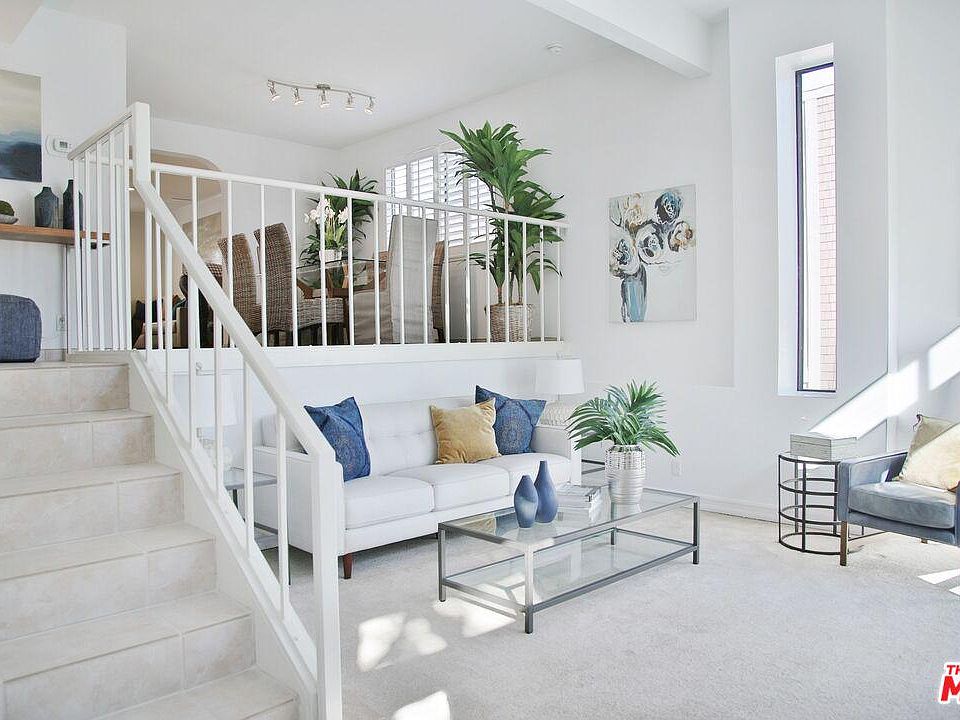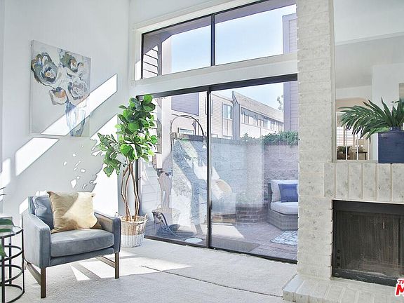 Light and bright end-unit townhome in the popular Villa Vallarta complex. Unit is set back from the street for additional quiet and privacy. Enter to living room through the front door from your large private patio or up the stairs from your own 2 car garage. Living room features generous windows on two sides, high ceilings, and fireplace. Step up to dining area with wet bar and continue to family room that is open to kitchen. Well-equipped kitchen is spacious with ample cabinetry, granite countertops, and breakfast bar. Powder room on this level as well. Head upstairs to owner's suite, which is extremely spacious with an entire wall of closet space, ceiling fan, and large front-facing balcony. En-suite owner's bathroom has dual sinks, separate shower and soaking tub, and openable skylight. Second bedroom also has ceiling fan and en-suite full bathroom. Two car garage has washer/dryer and built-in cabinetry for storage and handy work. Professionally managed Villa Vallarta HOA includes earthquake insurance, cable, internet, water, and sewer is a great value with amenities such as four pools, four spas, racquetball court, and attractive grounds. Gated community with lots of guest parking and great location across from Glen Alla Park and short distance to Marina, shops and restaurants, Silicon Beach employment, and easy access to freeways, LAX, and the beach.