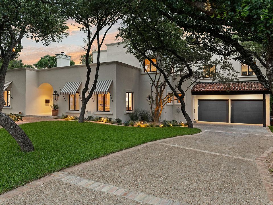 Tranquil living awaits in this meticulously renovated four-bedroom, three-and-a-half-bathroom home featuring significant architecture, designer interior finishes, hill country views, and over a half-acre of landscaped, poolside outdoor space in Austin’s desirable Highland Park neighborhood. Towering trees, custom striped awnings and an arched entry welcomes you into this sanctuary filled with thoughtful details. Handsome plaster walls, hand-carved interior doors, and Moroccan limestone flooring effortlessly work together exuding a warm and inviting palate. Whether entertaining larger gatherings or more intimate settings, the layout works perfectly. Upon entering the foyer, navigate to the formal dining room, the book lined study/library, or the expansive great room. Rich walnut countertops, woven rattan pendants, open shelving and a gathering center island define the kitchen, which seamlessly flows to the family room with a sitting fireplace and bar center complete with hand cut tiles. Head outdoors where arched openings, beamed ceilings and patinaed Saltillo tile open to the private back yard showcasing the views. A must see is your own nature trail down to the ravine at the back of the property. The home’s accommodations begin with the relaxing main-floor owner’s suite overlooking the verandas and private setting. On the upper level, you’ll find three additional secondary bedrooms, two bathrooms and two separate retreats. Enjoy either the impressive barrel-vaulted living space or head out to the expansive balcony to take in the views. A truly special property offering privacy, location and an unparalleled renovation.