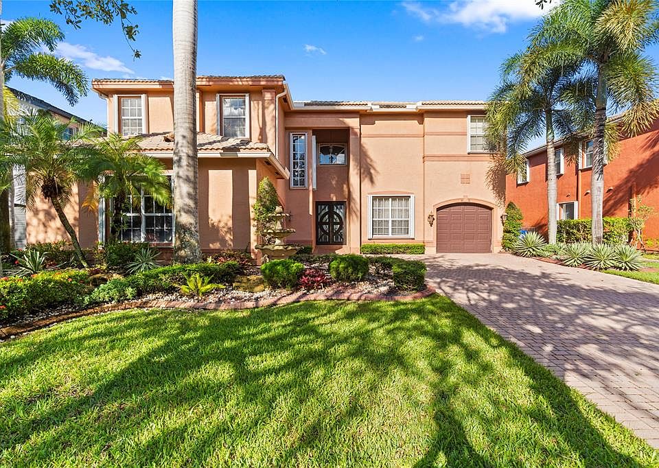 Elegant 4BR/office/big loft /3.5 BA home featuring marble floors on the main level, hardwood stairs & second floor, and a custom wrought-iron staircase. One bedroom downstairs with a private bathroom and office, spacious layout with gourmet kitchen, formal dining, and a luxurious primary suite. Enjoy outdoor living with a resort-style pool with jacuzzi, screened patio, and screened balcony. High ceilings, abundant natural light, and premium finishes throughout. Homeowners Association includes internet, alarm, cable and 5-star clubhouse