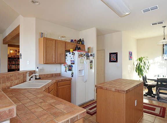 Large, open concept, beautiful home. Foyer and bathrooms are tile, kitchen and master bath countertops are also tile. New wood floors in living and formal dining rooms. Kiva Fireplace, lots of windows and closet space, 2 skylights, fans in every room. 400 square foot custom gazebo with T&G, bancos and ready to run electric. School for PreK-8th grade is Nina Otero.