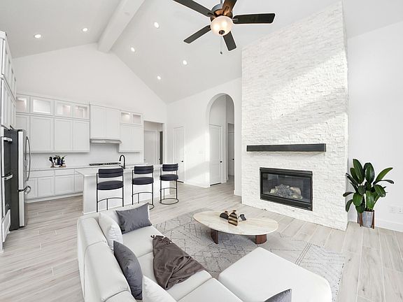 Introducing Chesmar’s NEWEST ONE-STORY floorplan—The BONNEVILLE! This thoughtfully designed 1,785 SF home features 3 bedrooms, 2 baths, study, & a 3-car garage. The heart of the home is the open-concept kitchen, dining, and family room with 13’ VAULTED CEILINGS and SLIDING GLASS DOORS leading to an extended covered patio. Upgraded kitchen offers 42" white cabinets with STACKED UPPERS WITH GLASS FRONTS, QUARTZ counters, 36" cooktop, DOUBLE OVENS, under-cabinet lighting, and a large sink. Enjoy cozy evenings by the GAS FIREPLACE with ceramic tile surround. The spacious primary suite includes a luxurious ensuite with dual granite vanities, soaking tub, and walk-in shower. Soaring 12 to 14 ft and large windows let in ample natural light. PLUS- 8' doors, 2" blinds, gutters, full landscaping w/sprinklers, and 4-sided brick are ALL STANDARD. Washer, dryer included. Meridiana residents enjoy award winning resort-style amenities. Be the first to see this new floor plan-Schedule your tour today!