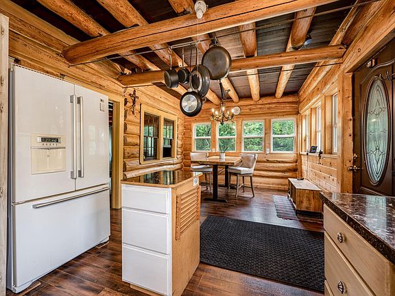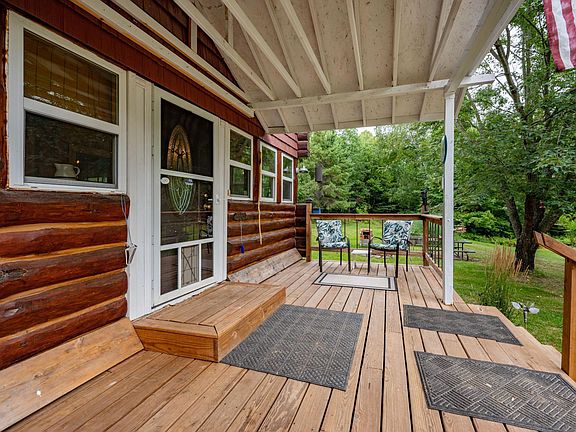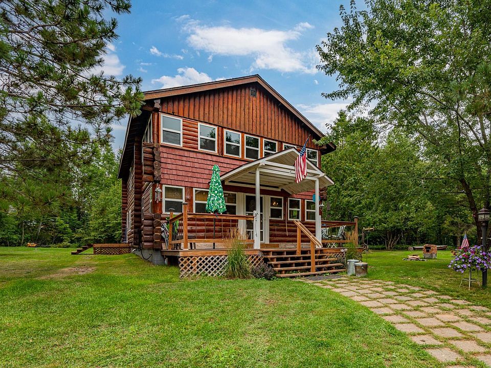 Nestled within nearly 20 acres of private, wooded splendor, this enchanting log home with rustic charm and offers a serene connection to nature, with over 600 acres of state land behind property.