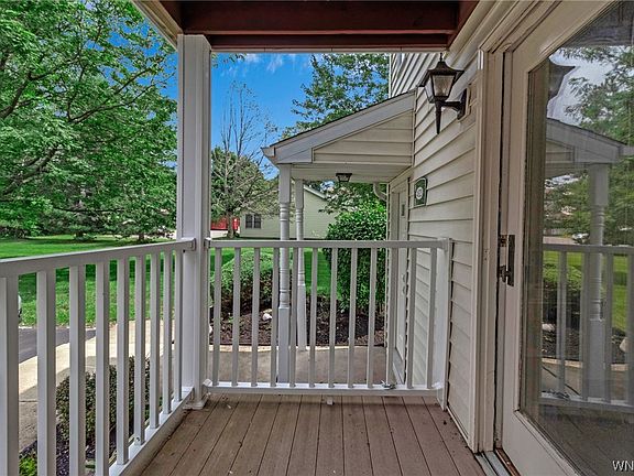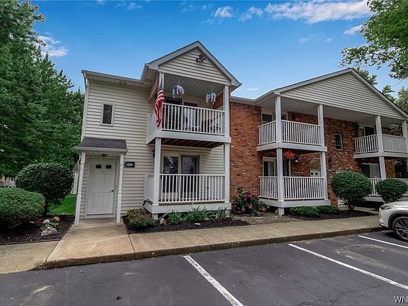Welcome to the lovely move-in ready 1st floor end unit Condo in the Lake Tree Village Community! Spacious open concept living room and dining room with adjoining fully applianced kitchen. Living room features sliding glass doors that take you out to a private maintenance free porch that overlooks the well-manicured grounds. 2 large bedrooms, one of which has a 1/2 bath ensuite. Large primary bathroom located in the hallway. Lots of storage in the many closets and the private basement (washer/dryer included). Don't forget the detached 1 car garage (#7 - end unit) and designated parking spot #7. Consider Owning at this price before Renting or paying for Student Housing! Conveniently located near UB, the 990, restaurants, retail stores & coffee shops! A peaceful serene setting, maintenance free living, centrally located, and all at a great price! Showings begin immediately and offers being reviewed as received!