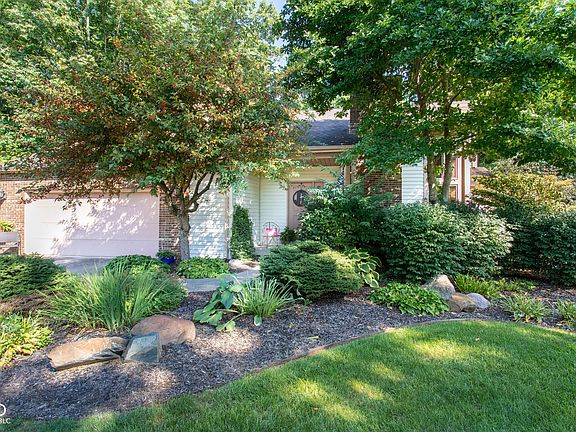 This home is a show stopper!! Floor-to-ceiling brick gas log fireplace. Quality build, and timeless beautiful decor in this 1.5 story home with vaulted ceilings and hardwood floors. It's ready to move in! Beautiful lighting throughout, loft and two large bedrooms upstairs. Walk out directly from the 1st floor primary bedroom on to the expansive deck which overlooks the wooded ravined lot. Sliding glass doors from the kitchen/dining bring in lots of natural light. Primary bath has walk-in shower, laundry on the main floor, and a partial basement that would take very little effort to finish into another living area or use as extra storage! Quartz countertop in the island, convection oven range, and stainless steel appliances all stay. Koi pond outside the breakfast nook window is closed for the season, but is fully functional. This home is tucked beautifully into its partially wooded lot, and offers established trees and landscaping that enhance the outside architecture. HOA provides tennis courts, pickleball, basketball, volleyball, play area, and pavilion. Pool membership optional. Please visit their website listed under the HOA information for more details.