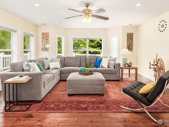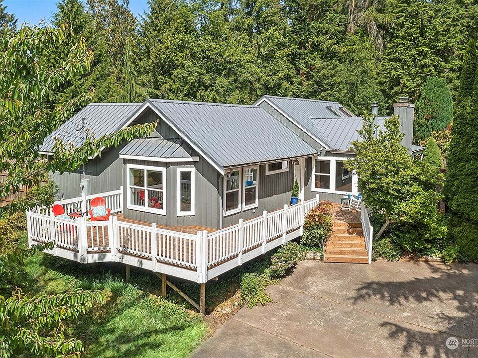 Nestled on a sunny clearing amid lush woods, this light filled, beautifully updated Whidbey sanctuary includes: open floorplan main house w/2bds/2bths on 1st floor & cozy 3rd bd/playrm/office upstairs, a 536 sqft 1bd/1bth separate ADU w/2nd living & kitchen space, AND 1.8 fully fenced acres w/garden space, shed, chicken coop, mature fruit trees, seasonal creek & fire pit. Newer wiring, electrical panel, windows, floors, woodstove, furnace, ss appliances, granite countertops & 100yr metal roof. Enjoy sunsets from your generous deck or while paddling on nearby Goss Lake. Perfect full-time residence, homestead farm, weekend home or vacation rental. Fabulously located: 4mi. to Bayview Corner, 5mi. to Langley, 4mi. to Freeland, 15 mins to ferry