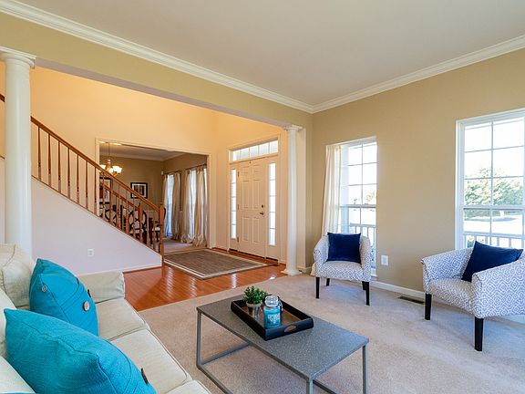 Nestled on a private lot in the beautiful Brookside Community, the Avalon, with dual staircase, a true owners suite with sitting room, a sunny morning room with palladian window overlooking trees, 3 full baths on BR level, and an inviting front porch is an easy-living floor plan you'll love. Spacious, sunny kitchen layout with extended island, some glass front cabinets, double wall ovens, gas cook top and lg. walk-in pantry. Eggs sunny side up served in the morning room/sunroom (used by owners as a kitchen dining area). Gas HVAC both zones, central vacuum & intercom system. Owners love that all BRs are well proportioned, two BRs share a buddy bath, and the master has tray ceilings and a separate sitting room. Impressive master walk-in closets and bathroom with separate vanities and a jetted tub (shower recently redone). The finished lower level is so versatile with a game room area, exercise area, play area, media room and full bath. TV components and speakers in media room convey. Good storage in the utility room. This lot is very private with oak and evergreen in the back - shed is on this property. Paver patio at the walk-out entrance (tiled for muddy feet) to enjoy the nice summer evenings. If you have not been to Brookside yet, come visit! Club houses and pools, tennis, community lake, walking paths, BB & tennis courts, tot lots, and a very active HOA with lots of family activities. Appliance updates include hot water heater with expansion tank, dishwasher, microwave hood and both zones AC unit. NOTE: carpet in basement to be stretched after weight equipment removed. SEE VIDEO & 3D TOUR!